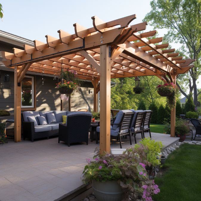 A pergola is a type of outdoor structure that is used to create a shaded area in a yard or garden. It consists of four vertical posts that are connected by two horizontal beams and often has a roof, lattice panels, or vines growing on it. Pergolas are a great way to provide shade and privacy in your outdoor space, and can be used for a variety of purposes, such as outdoor dining, entertaining, or relaxing.